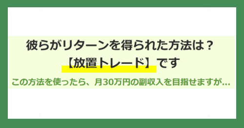1日わずか10分で稼ぐ方法は放置トレードだそうです。